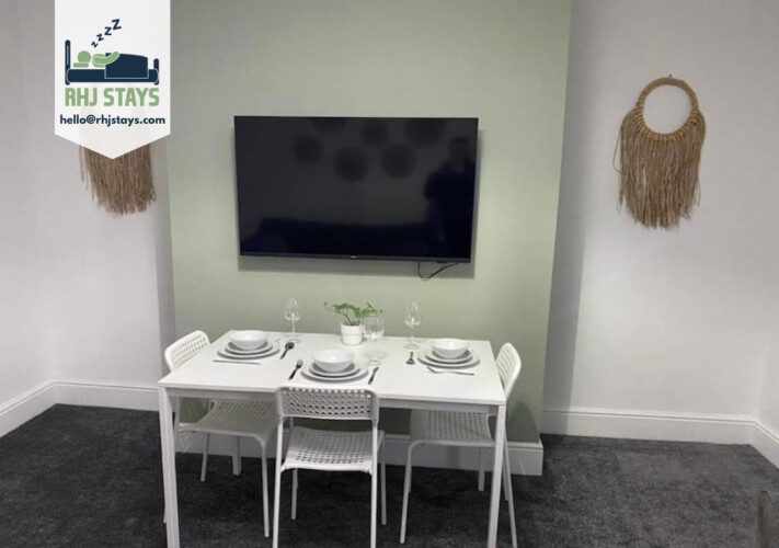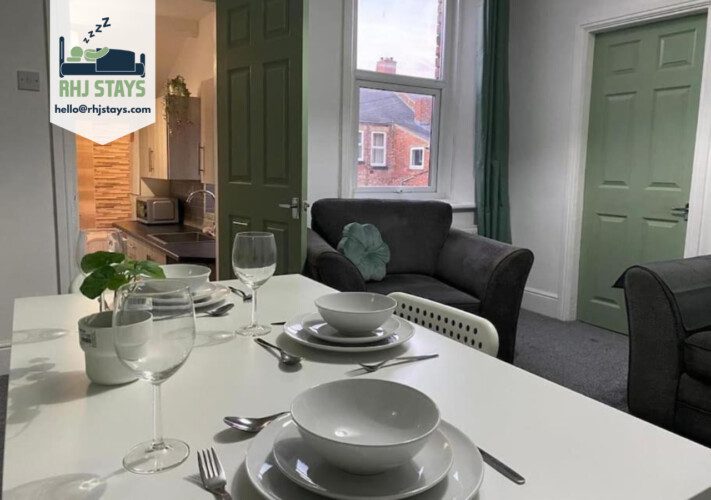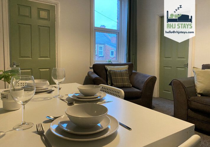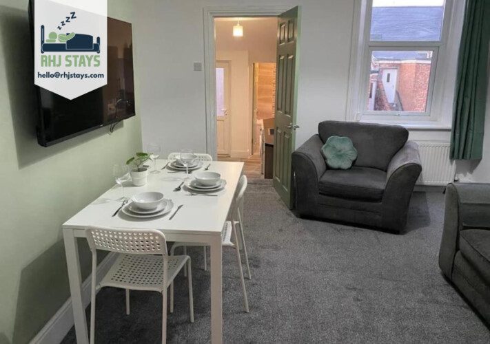 Enjoy a stylish experience at this centrally-located place. This 3 bedroom flat has 2 double beds and 3 single beds, with free parking and wifi, great central location for Newcastle and Gateshead, ideal for contractors and families alike. The property has a fully eqiupped kitchen, free fibre wifi, towels and linen provided, 50″ flat screen TV and really is a home from home.