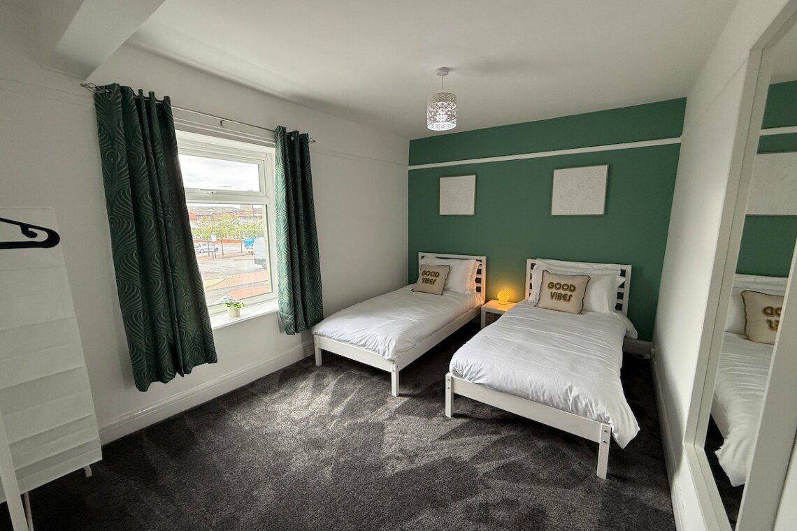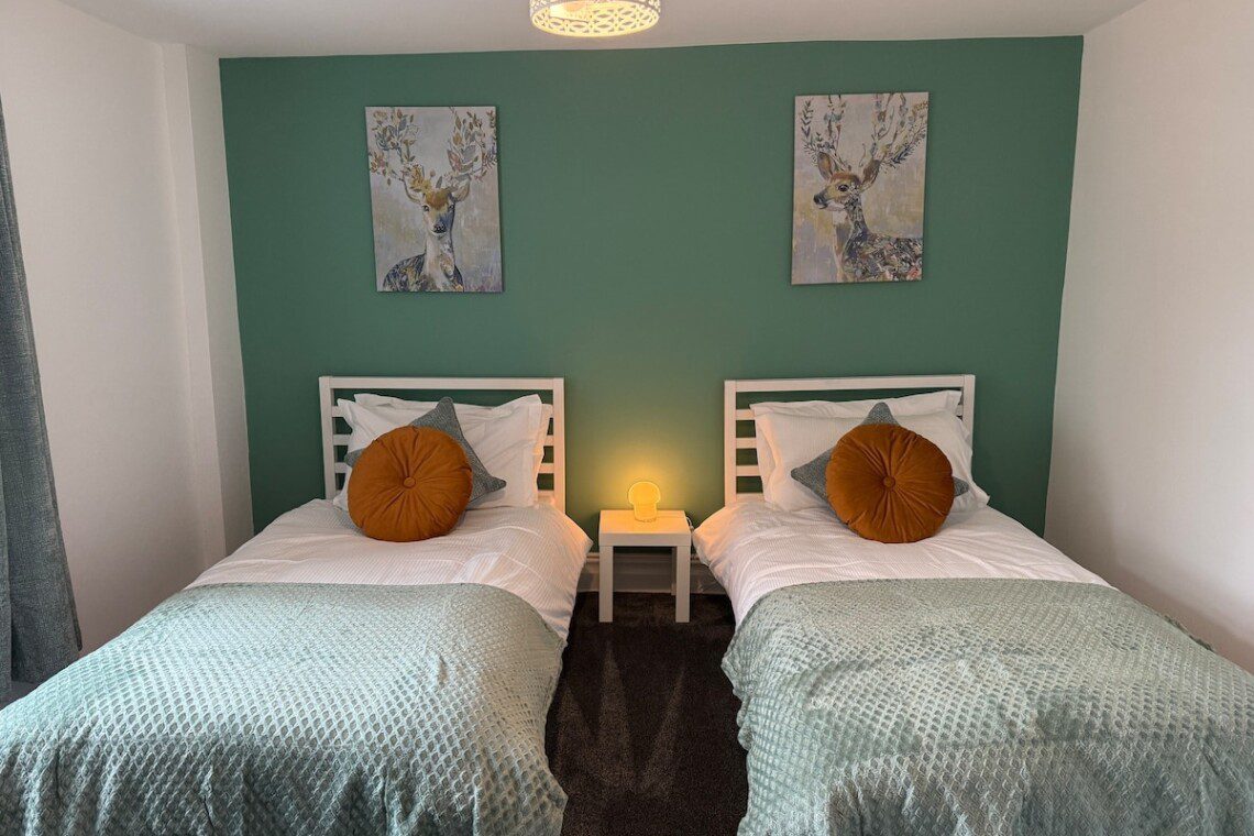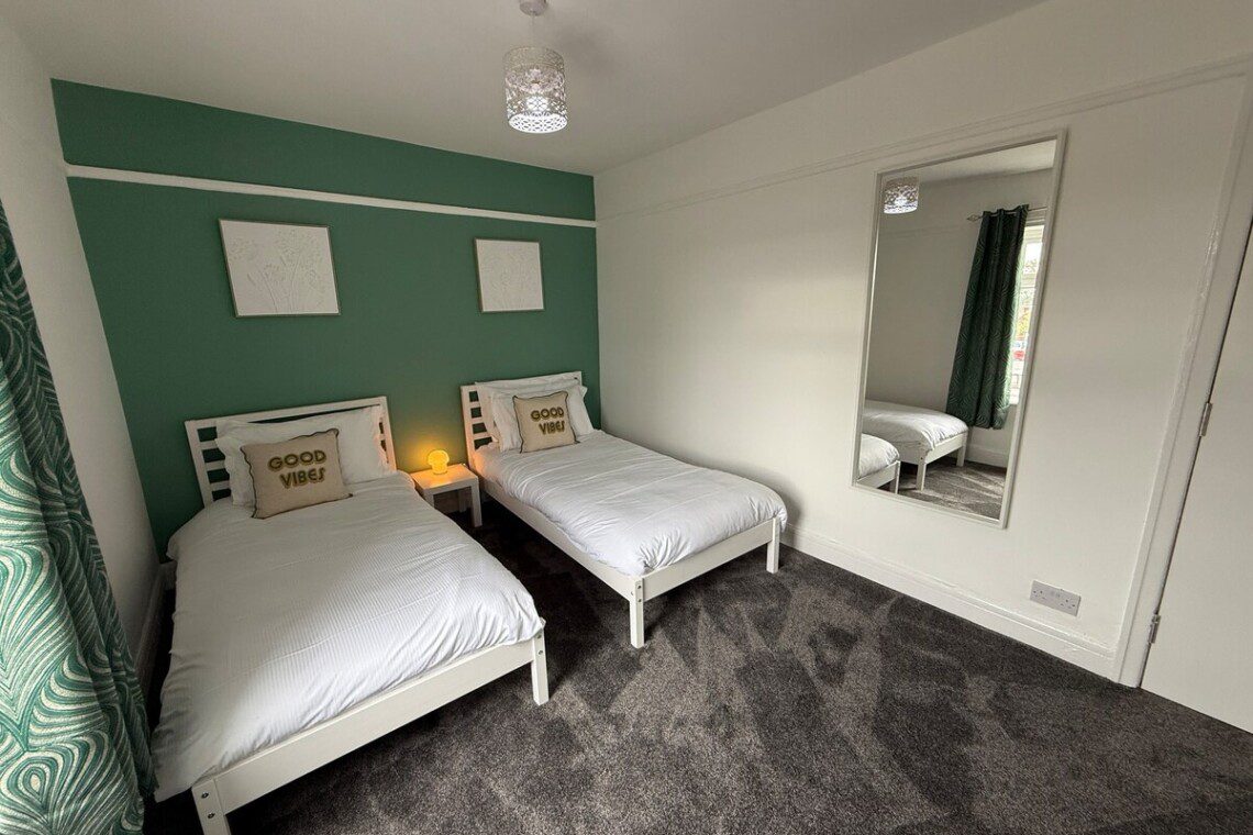 The fourth bedroom has two single beds.